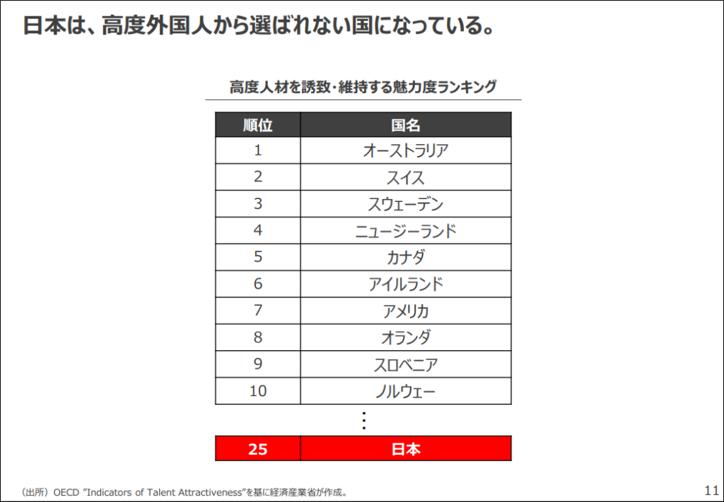 高度人材から選ばれない国