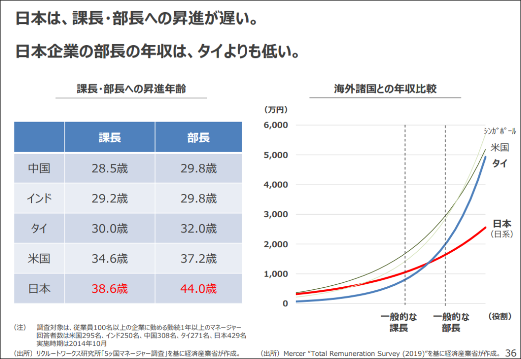 課長・部長の給与はタイ以下