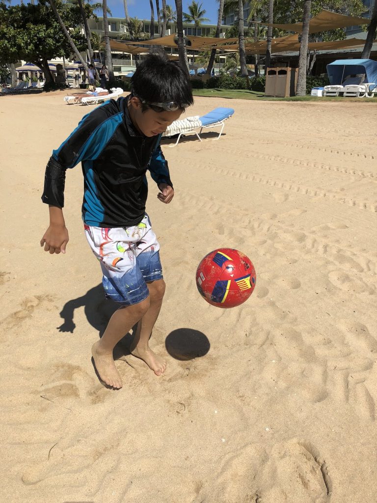 最初の2泊はカハラ・リゾートに、後の3泊はワイキキのヒルトンに宿泊しました。カズはロサンゼルス、上海に家族で行っていて、サッカーの遠征で韓国に行ってるので、これで4回目の海外ですね。