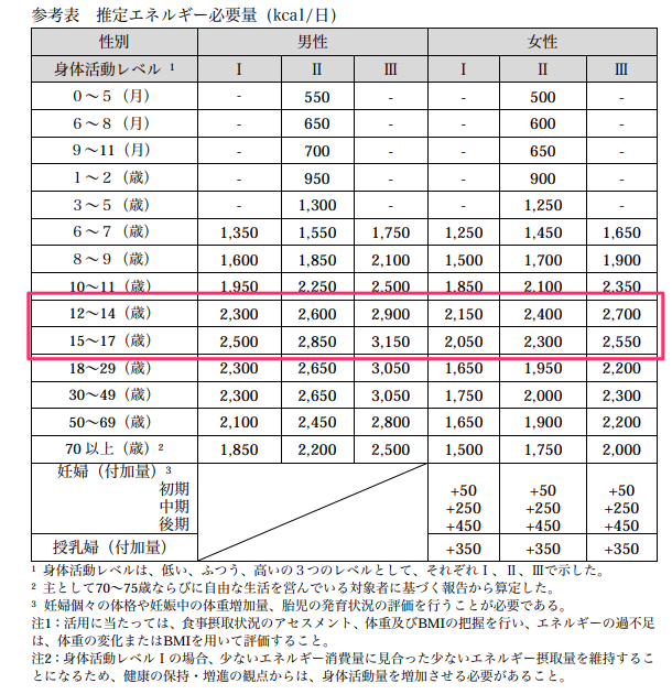 部活でなくクラブチームに進む子供の多くは帰りが遅くなると思います。運動量は増え、睡眠時間が減るので体力の消耗が大きくなります。やはり、体力の維持には食べることです。横浜FCでは、一食で、白米であれば茶碗2杯、トーストであれば4枚たべるように言われています。厚生労働省の「日本人の食事摂取基準(2015年版)策定検討会」の報告書では、運動している中学生は1日に2600〜3150kcalが必要とされています。